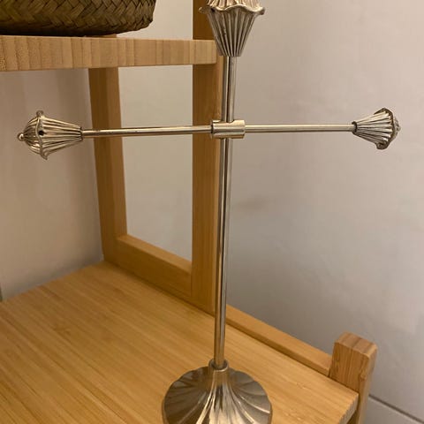 Lisbeth Dahl smykkestativ, passer også til armbånd. Se mål på bilder. 150 kr +69 kr i frakt eller fiksferdig.