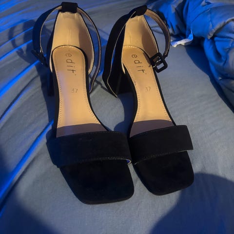 Nydelige høyhælte pensko i sateng finish med spaghetti cross straps med spenne for justering på siden. Pent brukt et par ganger. Selges da de fortjener å brukes masse- superfine.pent brukte, Se bilder for tilstand. Lær innerfor og såle, kjøpt nye for 1700kr.