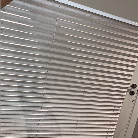 fin gardin som stenger ute lyset. Den har blitt litt falmet, men dette synes ikke fra forsiden.