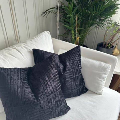 Putene er laget av fløyel og er fylt med mykt skum. Kan brukes med/uten stol.