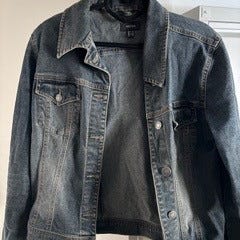 Utrolig stilig frakk/skjortekjole i dongeri/denim. Vintage BikBok 90-tallet. Funker med belte i livet, eller løs. Opplegg for skulderputer, men selges uten. Detaljer i skinn. Romslig i størrelsen, vil si M/L.