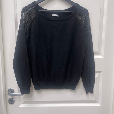 svart, langermet topp med ribbestrikket tekstur og en høy hals.