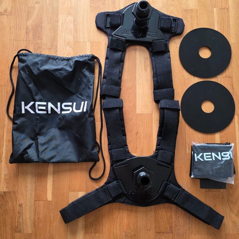 19 vekter til vektvest eller lignende. De er på 500 gram hver, 9,5 kg totalt