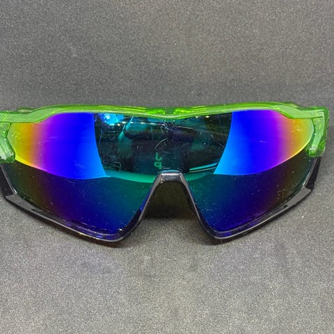 Som nye, tøffe solbriller med blått speilglass selges.