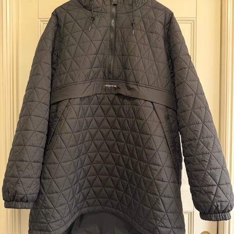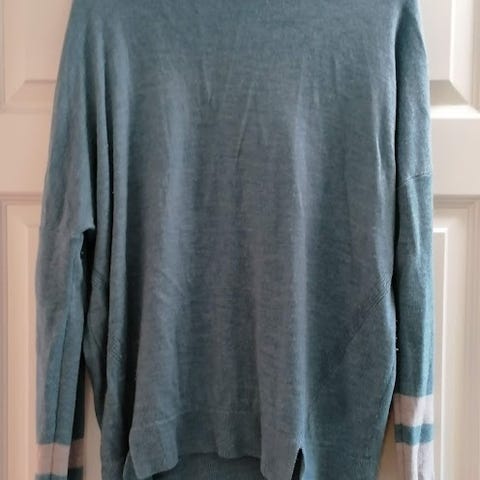 (Litt stor men tror ikke jeg ville hatt den mindre = preferanser). Målebåndet: Armpit to pit ca 53cm (målt løst hengende, så veldidg omtrentlig mål). Nakke til hem ca 79cm.