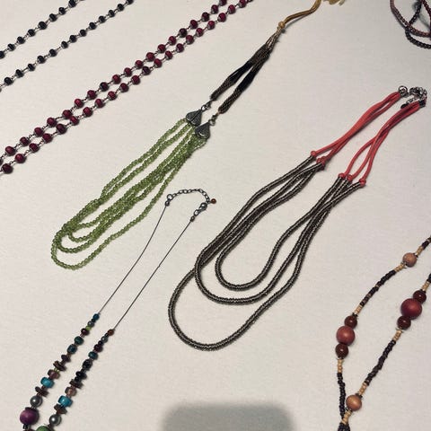 Fire ulike halsbånd selges helst samlet. 300kr+porto.