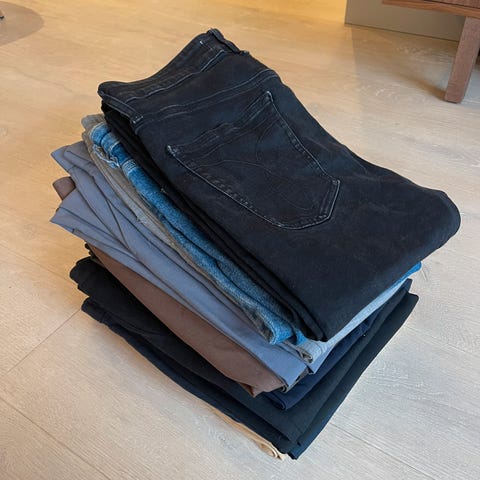 Karve jeans skinny fit, W 30. Begge deler pent brukt. De hullene som er på jeansen var ved innkjøp. Det er et bittelite hull i innerforet på lomme foran. Ikke praktisk betydning, men et 2-3 sting ordner det helt. Se bilde.