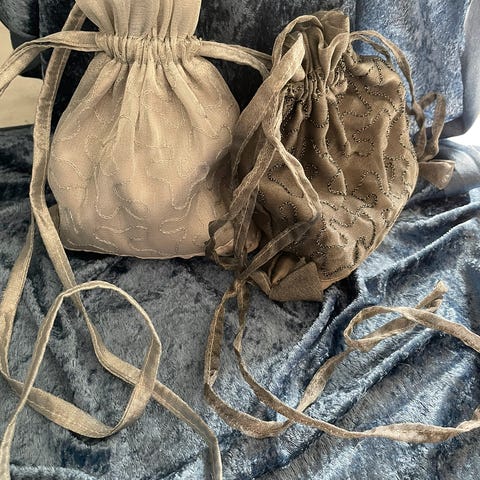 Hårbøylen er håndbrodert i de originale stoffene til Jærbunaden Veslemøy, og er foret innvendig med den tilhørende silken.