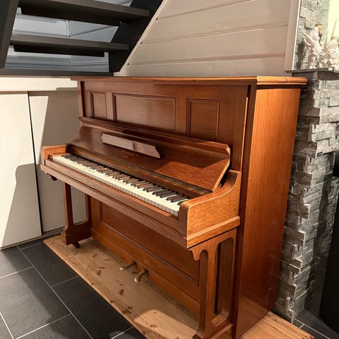 Selger et pent Feurich piano fra ca. 1960-tallet. Pianoet er nylig stemt (april 2024), og stemmeren uttalte at det er et svært fint instrument som har stått som pynt i mange år hos tidligere eier.