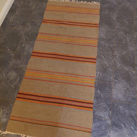 Vakkert og nasjonal historie.Teppe er vevd av en tekstilkunstner fra Rennebu, se navn på bilde.