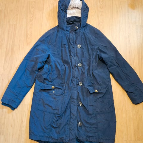 Fin marineblå ytterjakke i klassisk parkasfasong.