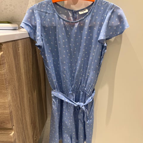 Søt sommer kjole i farge lyseblått med gule sitroner. Merke Only i str 8- 9 år. Kjolen er kun brukt et par ganger.