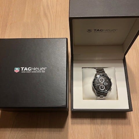 Klokken er kjøpt ny i Norge 29. januar 2015 og er komplett med alt som fulgte med som ny, med en sort Tag Heuer alligator rem og en ekstra Tag Heuer clasp. Klokken er i pen kosmetisk stand, med noen hairlines, ingen stygge hakk/riper.