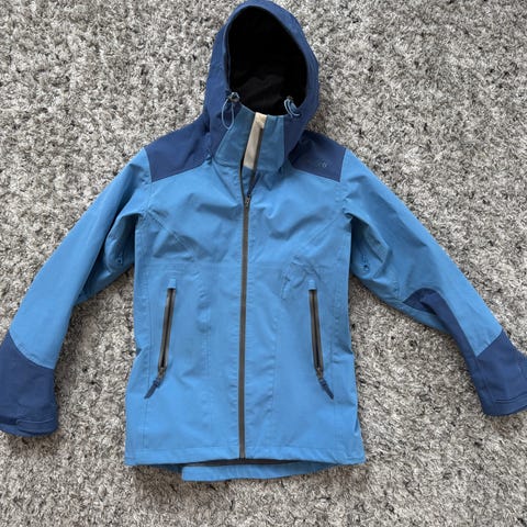 Turjakke fra Vikafjell med hette, sveisede sømmer og glidelås til lufting under arm og i side. Str.S. Som ny, bare brukt få ganger.