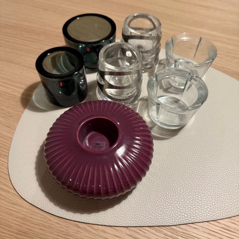 Den ene lysestaker har et lite hakk øverst på kanten.