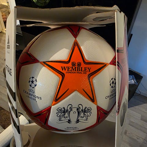 Selger en sjelden og eksklusiv gullfarget fotball fra Nike med navnet “RONALDO” trykket på. Dette er et unikt samleobjekt for fotballfans og spesielt for deg som er fan av Ronaldo-æraen. Ballen har et stilrent og iøynefallende design i metallisk gull, med Nike-logo og Ronaldo-navn trykket i svart.