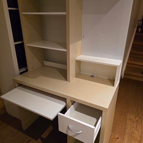 Begghengt hylle der døren åpnes utover/ nedover og fungerer som en liten skrivepult. Veldig plassvennlig i lite rom. Må hentes