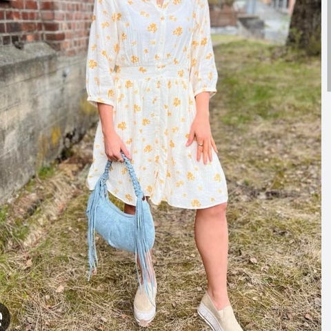 Flerfarget kjole fra MSCH Copenhagen. Knytedetalj i siden, kan derfor tilpasses. Størrelse M, normal i størrelse. Svært lite og pent brukt.
