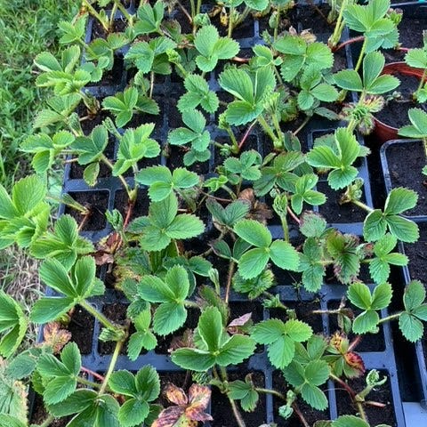 Jordbærplanter egnet for utendørs dyrking i hage eller kjøkkenhage. Plant dem i bed med jord og gjerne dekke av organisk materiale. Passer for den som ønsker å dyrke egne jordbær i sesong. Honeyeye og Corona. Grupperabatt: 100 planter koster 400 kr. 200 planter. Koster 700 kr.
