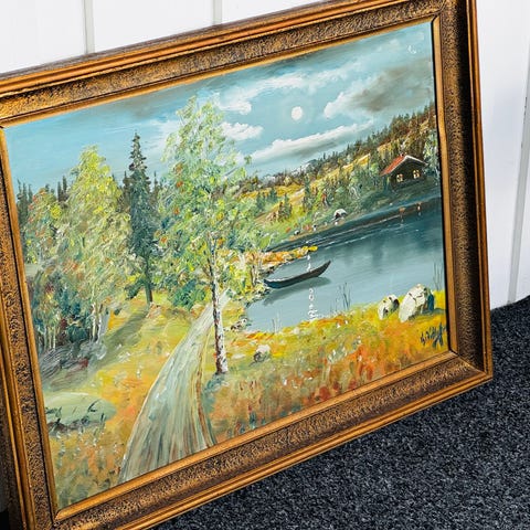Pent maleri fra kyst. Uljent alder- har selv kjøpt det brukt. Koselig å ha på hytte ved sjøen feks. Ukjent verdi - gi bud. Må hentes i Sarpsborg.