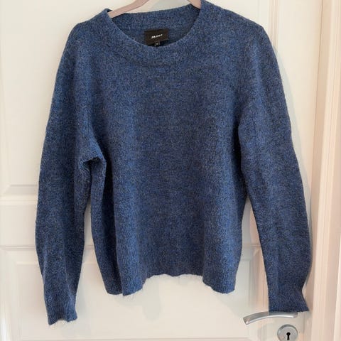 Ubrukt ullgenser fra Selected Femme. Ligger brettet til vanlig for å holde fasongen, og kun tatt opp på henger for bilde.