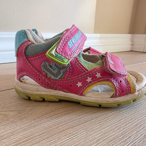 Sandalene har ingen feil som påvirker funksjonaliteten deres. Bare utseendet er tapt, men de er veldig komfortable. Passer for lek i vann. Tørker raskt.