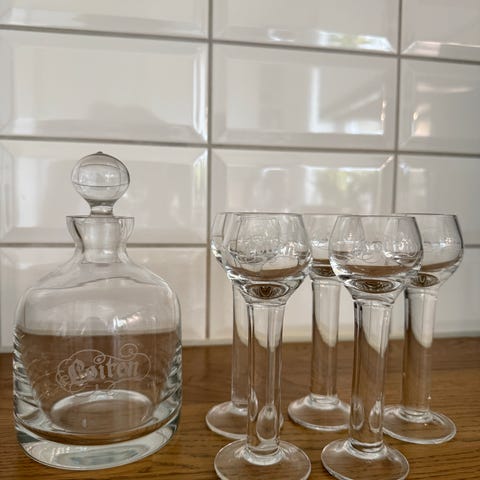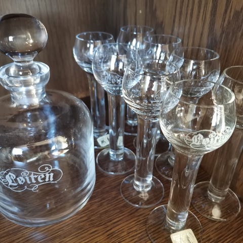 Løiten akevitt glass og karaffel
