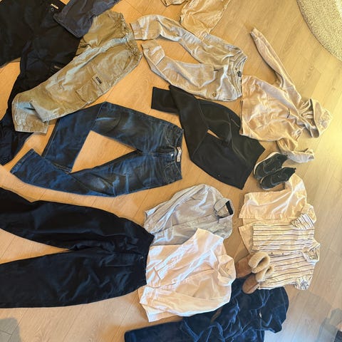 Det er klær til flere tusen som ny, alt selges samlet med kofferten. Veier 14kg