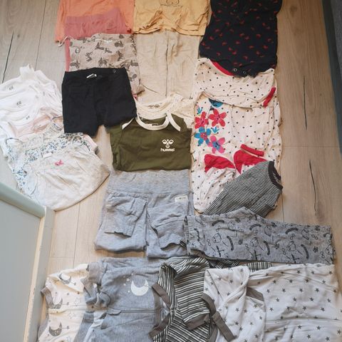 Klespakke 74/80. Rød genser er større, men brukt rundt 1 år en gang.