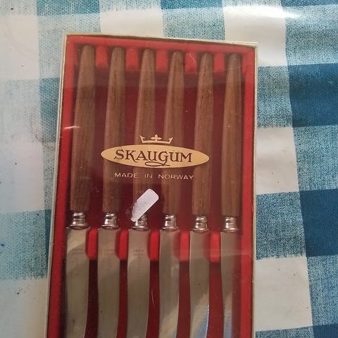 6 fruktkniver av merket Skaugum, 17,5 cm.
