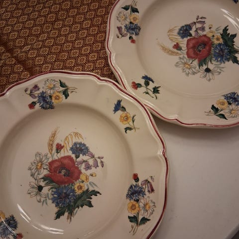Fransk porselen fra 1875-1900. Dekoren er håndmalt.