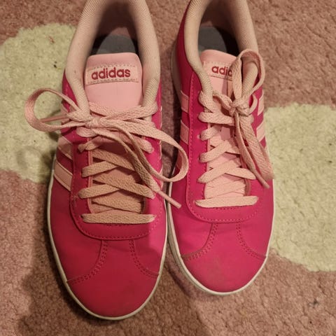 Kule sko fra Adidas i lilla og rosa i størrelse 38 3/4. Skoene er brukt en gang . Selges da de ble for store til meg.