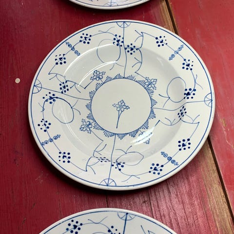 Denne typen keramikk er kjent for sin ugjennomsiktige glasur og ble produsert i en periode der Sarreguemines var en fremtredende produsent av fajanse og steintøy. Tallerknene i bildet viser et klassisk blått og hvitt mønster som ofte assosieres med denne typen produksjon fra Sarreguemines.