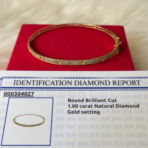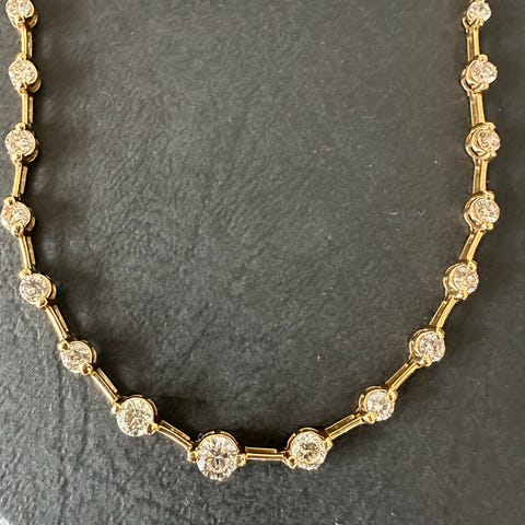 Nydelig station armbånd i 18karat gult/rosa gull, 18cm. 2ct naturlige diamanter (21stk). Armbånd er kjøpt hos gullsmed i Tokyo, ekthetsbevis medfølger. Kan naturligvis sende.