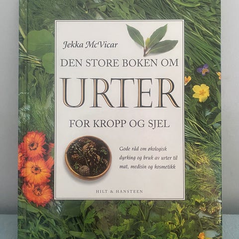Jekka McVicar; Urter for kropp og sjel. Gode råd om økologisk dyrking og bruk av urter til mat, medisin og kosmetikk. Utg. 1996. 255 sider. Rikt illustrert. Meget pent eks. Kr 150,-