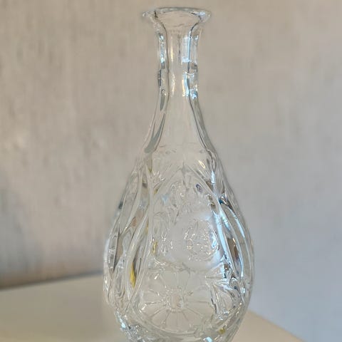 Søkeord: glassmugge glassvase glasskaraffel glasskunst blå.