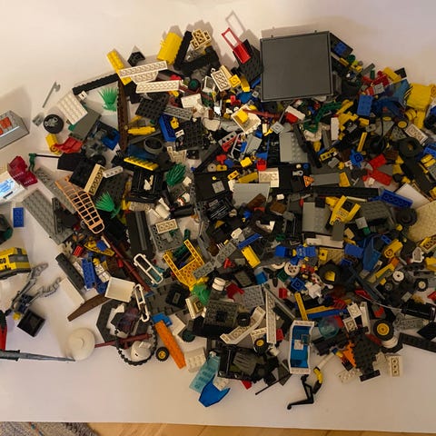 Legoboksene inkluderer settene 8570, 8533, 8568, 8571, 8587, 8566, 8565, 8561, 8560 x2, 8563.