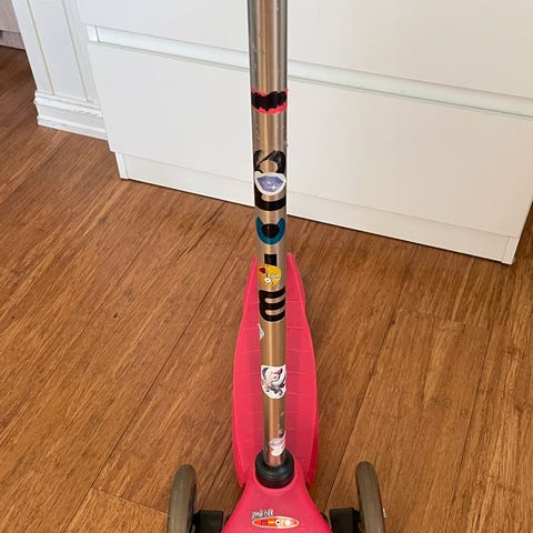 Minstemann har vokst fra sin kjære sparkesykkel. I god stand. Justerbart håndtak gjør at denne også passer for de aller minste og vokser i takt med barnet, vi har vært kjempefornøyd. Kjøpt ny av oss på Barnas Hus og stått lagret innendørs eller under tak.