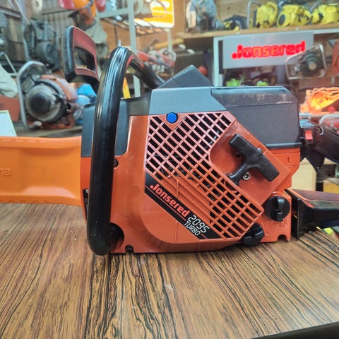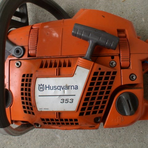 Lite brukt motorsag fra Biltema. Starter lett, men må bruke mye gass. Kan sikkert fikses lett