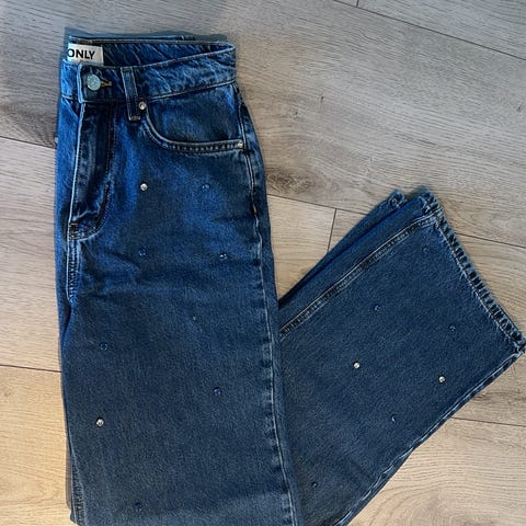 Veldig fin sleng bukse i fargen grå med diamanter. Str 27. ikke brukt.