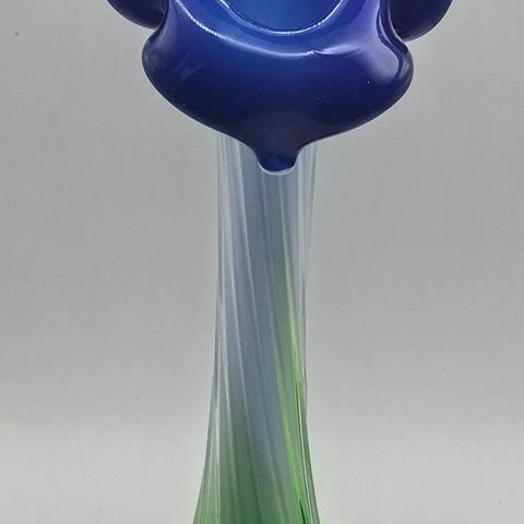 Vintage retro mid-century turquoise blue opalin glass vase, Opaline Fiorentina Empoli Italy