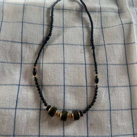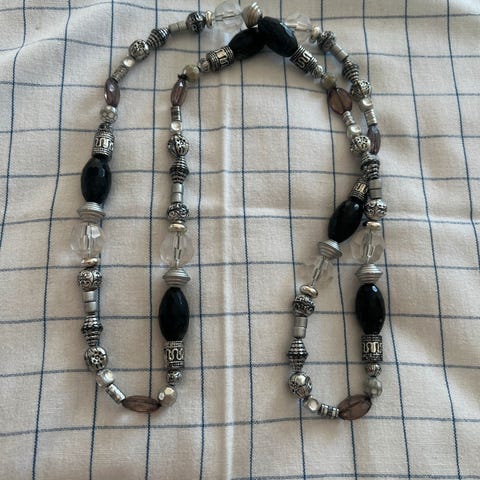 Vintage hvitt kjede med kuler (hentes/sendes)