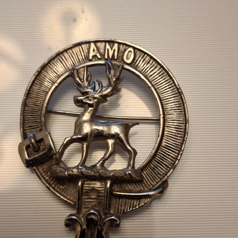 Skotsk klan våpenskjold brosje i tinn
