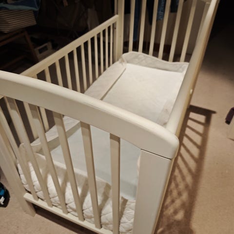 Veldig koselig seng med en madrass som er som ny. Vi har brukt den til våre barnebarn og nå er de blitt store nok til å sove i vanlig seng.