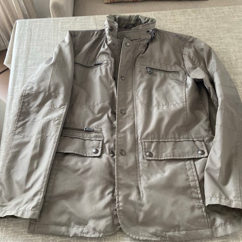 Meget pent brukt, og ikke brukt de to siste årene. Dette er en blanding av regnjakke og Trench. Men mere ment i regn.