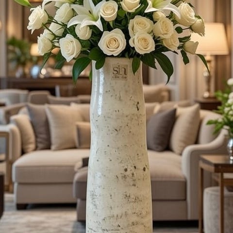Stilig fint design unik stor mørkgrå keramik kvalitet vasen+stor bukett blomster