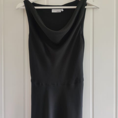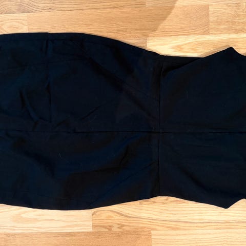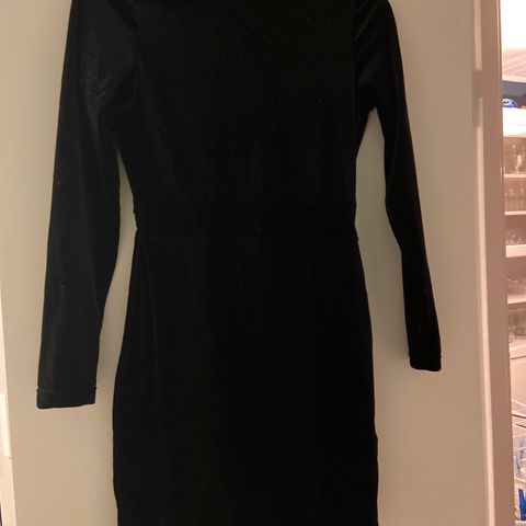 Sløyfe på venstre side av kjolen. Faller løs og ledig på kroppen.