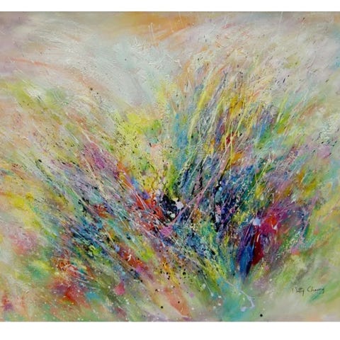 Oljemaleri på lerret med motiv av en løve iført hatt og briller. Bildet er i en moderne stil med flere farger og teksturer. Størrelsen er passende for innendørs dekor, og det kan tilføre et unikt preg til ethvert rom. Str 100x100 cm