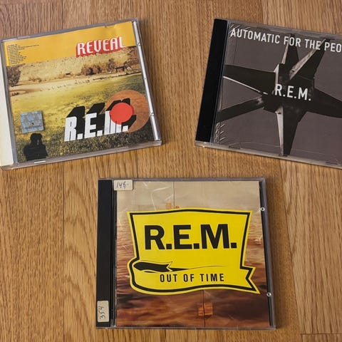 Selger fire CD av REM album, Reveal, Up, Automatic for the people og New adventures in hi-fi. Med samling er også singelen med Everybody Hurts. Selges samlet.