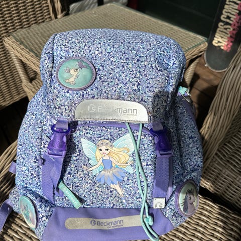 Pent brukt Beckmann skolesekk. Brukt i 1. Og 2.klasse av et barn. Regntrekk følger med